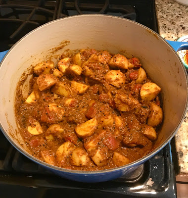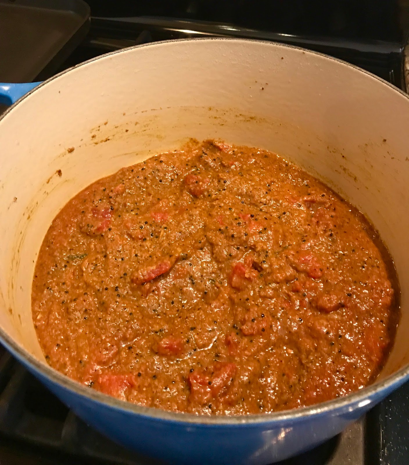 Add in your tomatoes and you now have a masala gravy that can be used to create a multitude of different dishes. You can add any meat, seafood, or as I do, sweet potatoes, potatoes, okra or paneer.