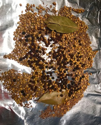 Roast all whole spices from first group in 350F oven until just starting to omit fragrance. About 4-5 minutes max. Remove and set aside to cool.