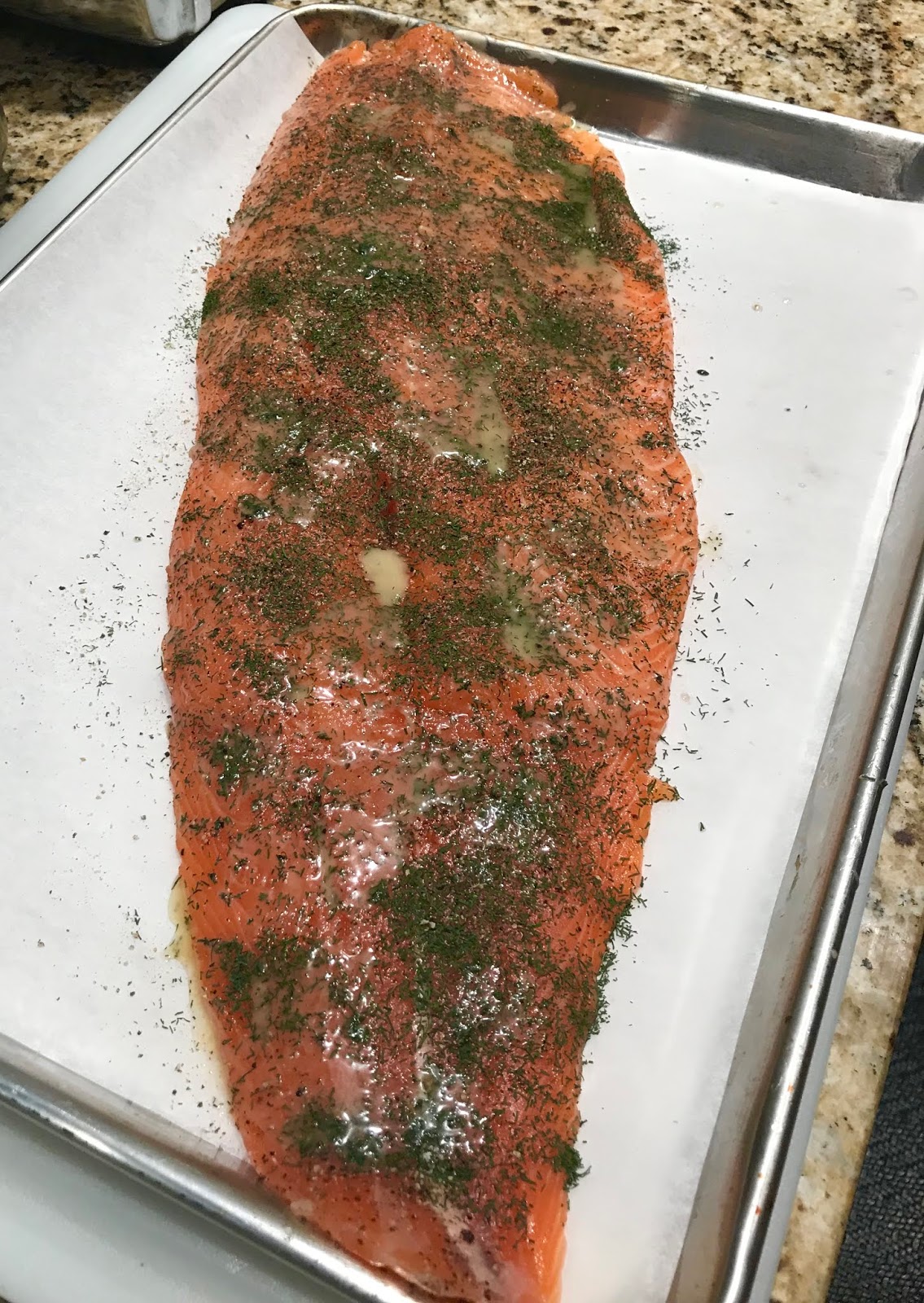 2 lb filet of Fresh Salmon, skin on is best, but not essential.