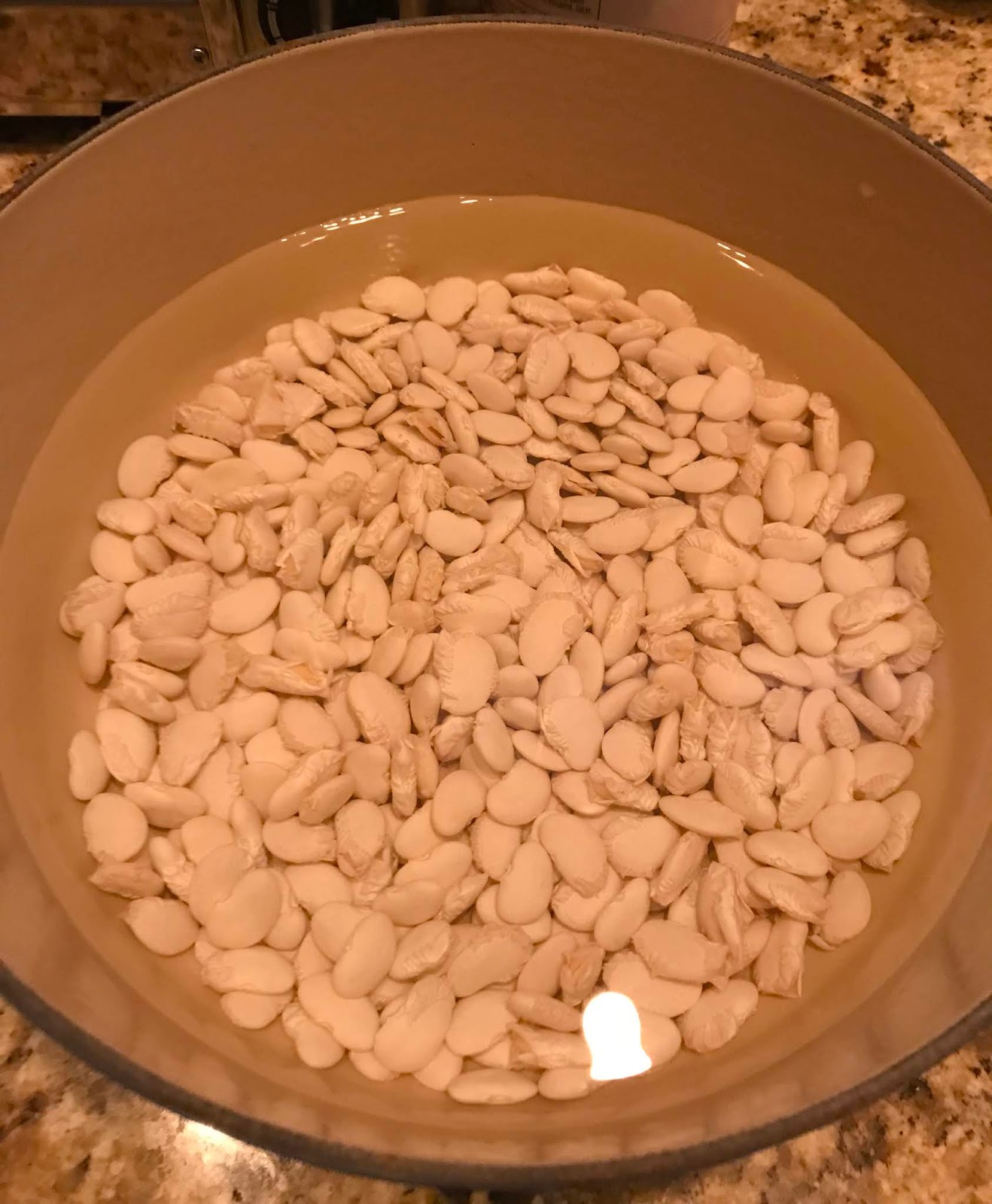 After your beans have finished soaking, bring them up to a boil and skim the scum. Add some salt, stir and skim one more time. It’s important to add the salt as the cooking process progresses. Don’t just dump it all in at once. Layering the seasoning is the best approach.