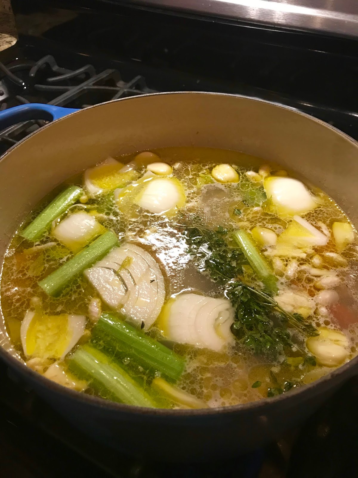 I’m a big believer in soaking the dried beans for at least 4-6 hours or overnight. I like to use a heavy cast iron pan like Le Creuset to do the soaking, so I can go right to the stove top without any bother.