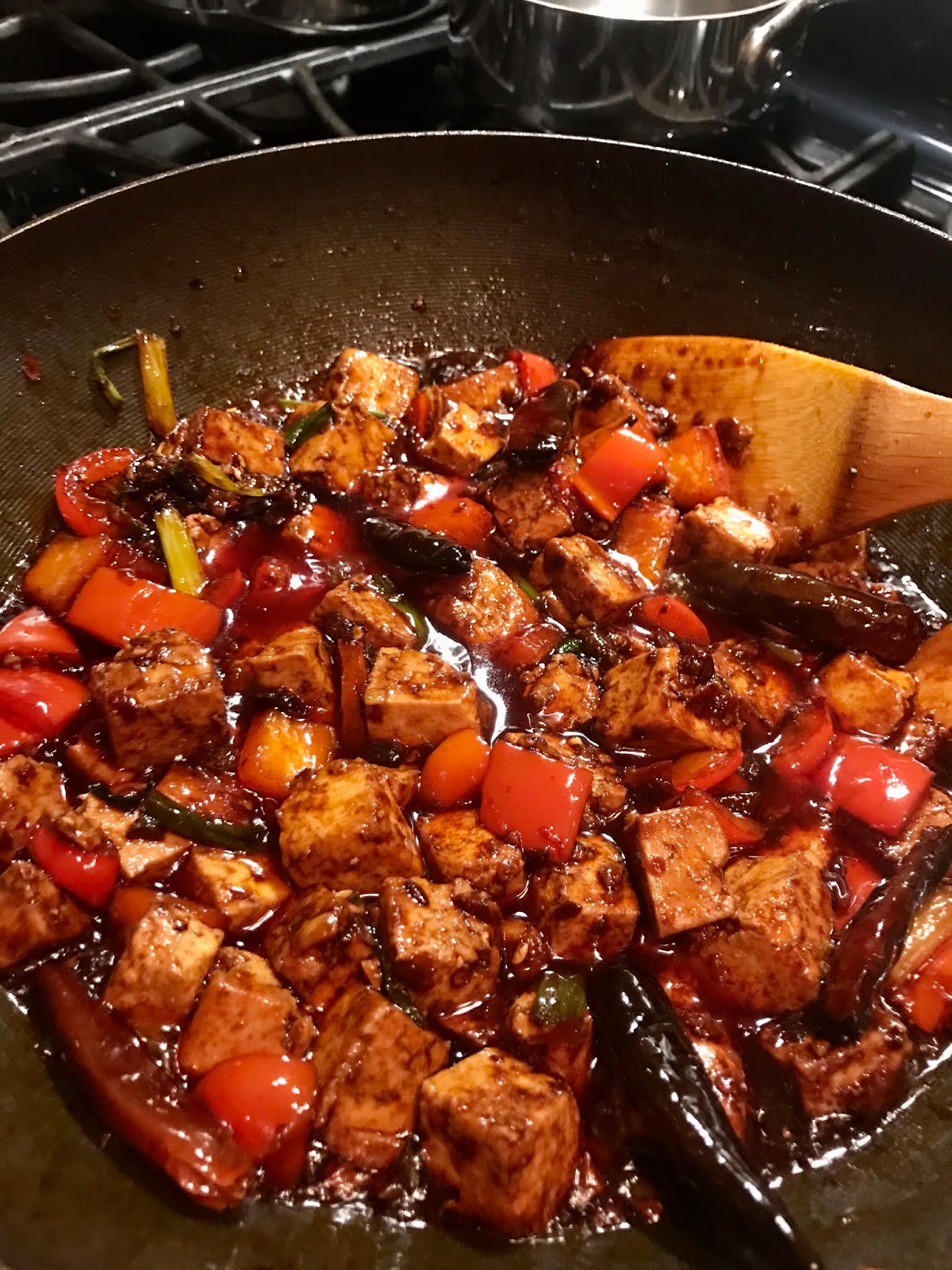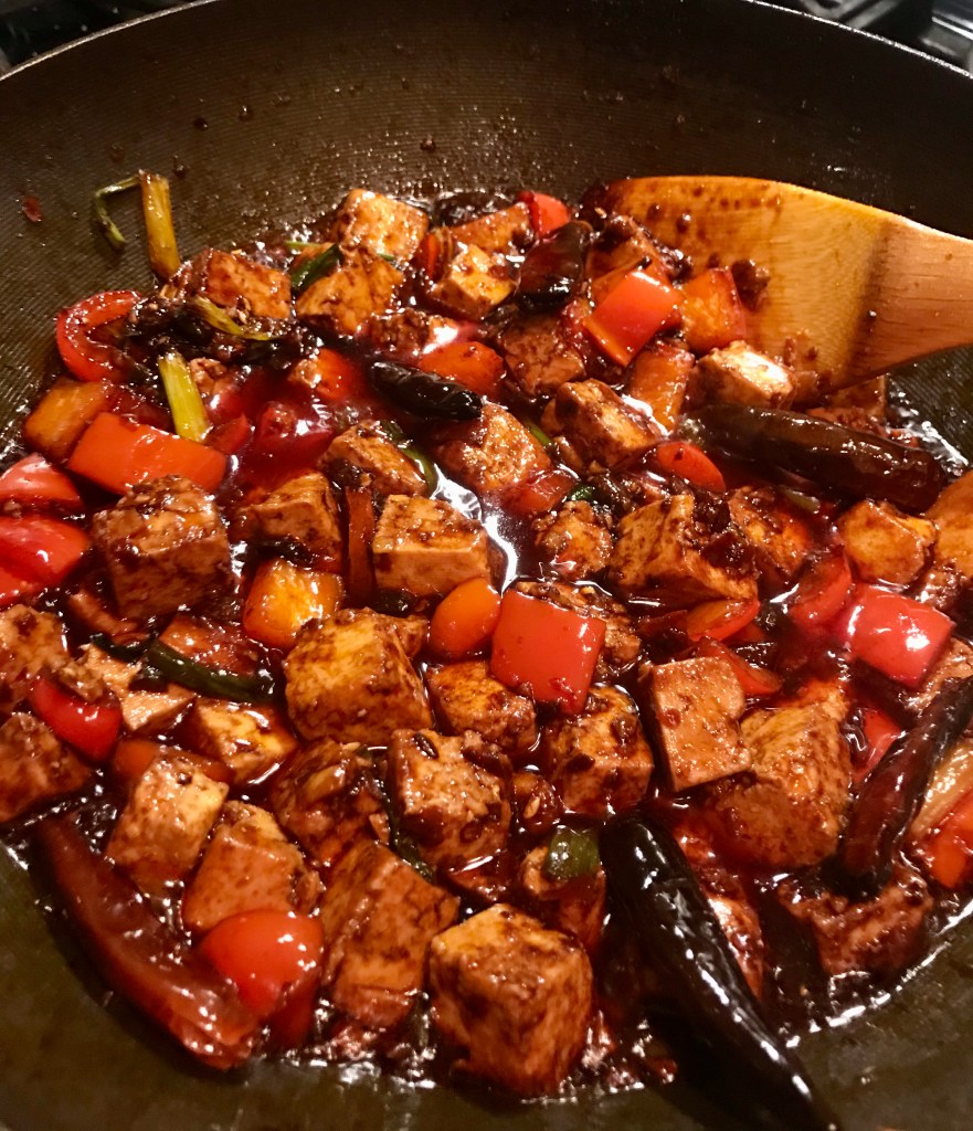 Once almost done, add tofu and then sauce mixture gently toss and allow to thicken.