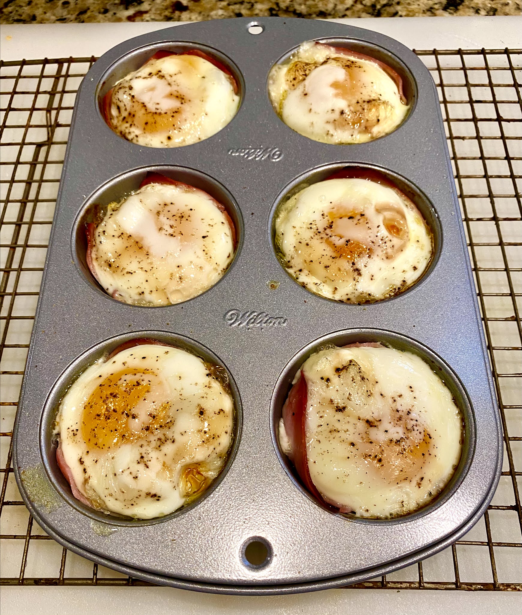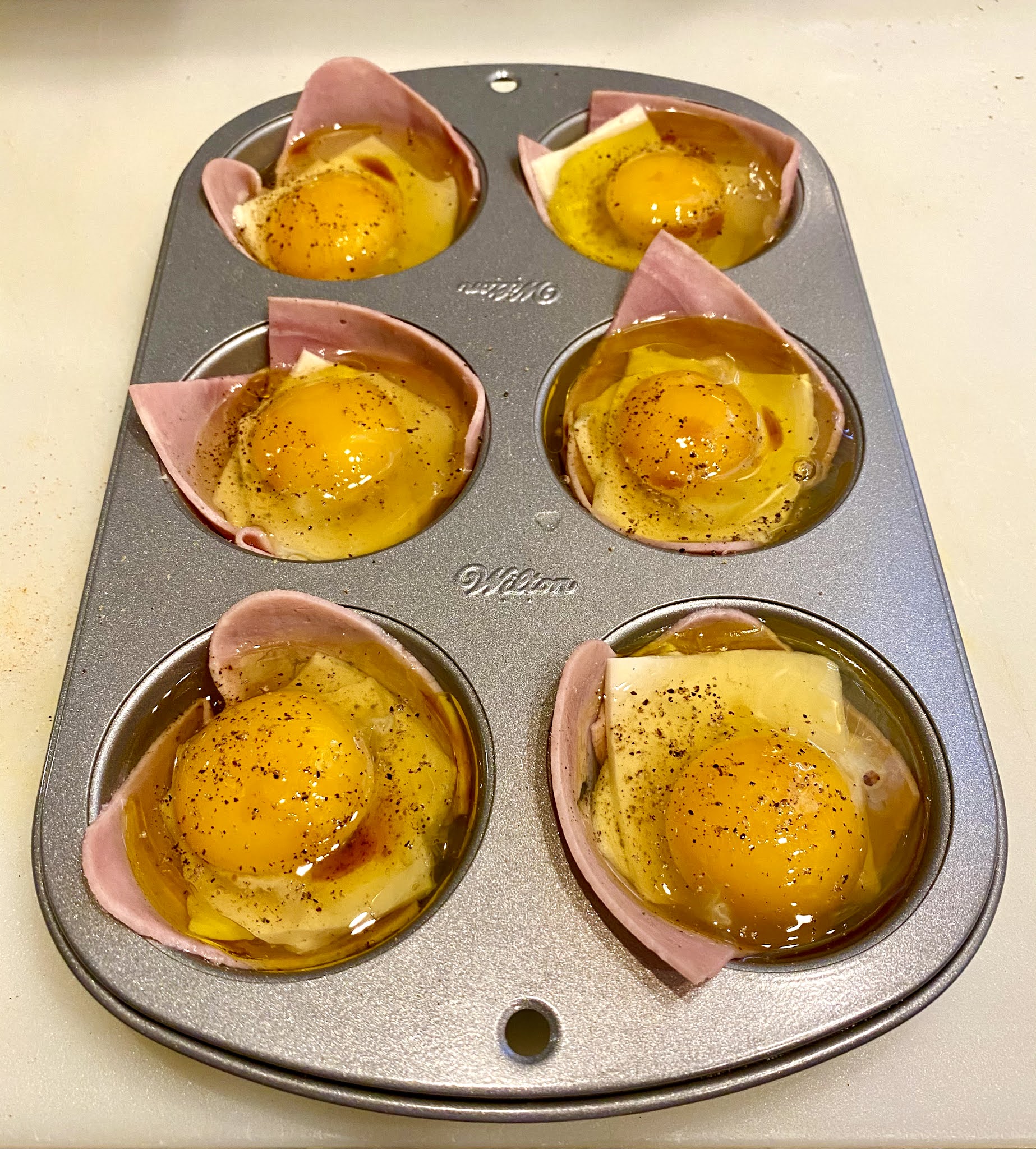 You have numerous options for what to put inside, but just make sure your ham lining is a drier ham. Or if normal sliced ham, dap with paper towels to remove the moisture. You want the eggs to roast, not steam.