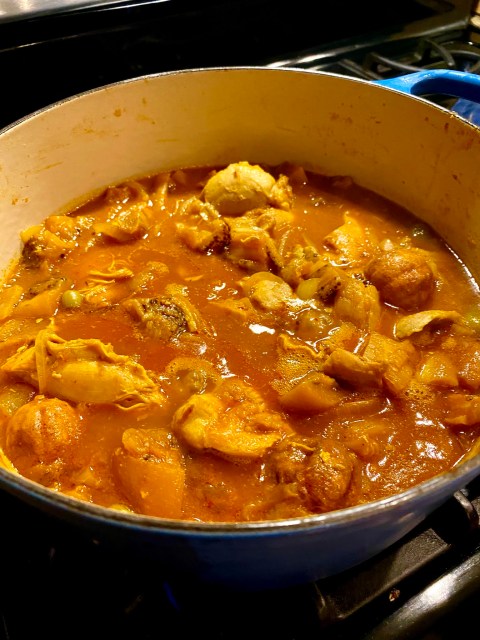 In Farsi, khoresh means stew and bademjam means eggplant. This particular khoresh is often made with beef or lamb, but I enjoy the chicken and find it lighter.