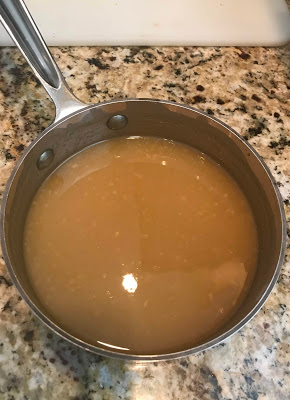 6) Scoop out a little of the pasta cooking water about 4 minutes before the pasta is done, and set it aside. I use a Pyrex measuring cup.