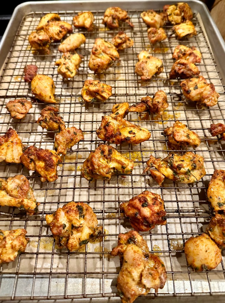 1 1/2 Tbsp Khmeli Suneli spice blend, 1/2 for chicken, 1/2 for flour. See note.